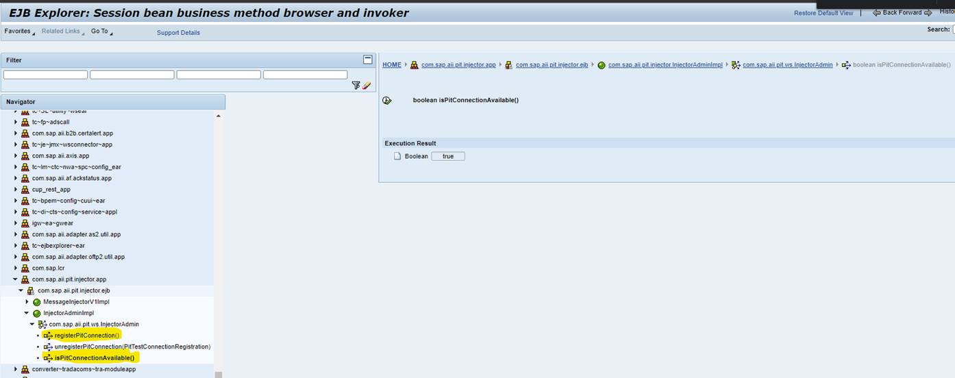 An error like this can happen if the PIT connection is not correctly registered (PI connection available is set to false). You can manually register it from the EJB Explorer using the registerPitConnection, as shown in the figure below.